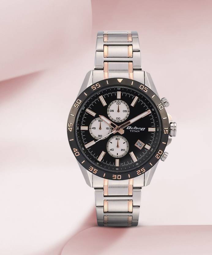Titan NP90106KM02 Titan Octane Chronograph Black Dial Silver & Rose Gold SS Strap Analog Watch - For Men & Women
