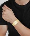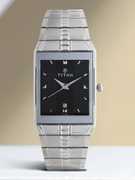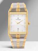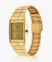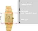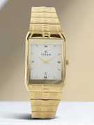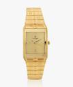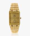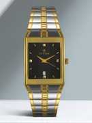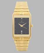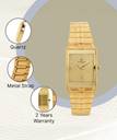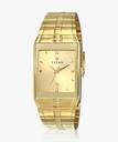 This analog watch for men features a gold, rectangular dial. The case is fitted with a crown that lets you adjust the time. The dial features plain three hands, slanted markings at five minute intervals, studded markings at quarter intervals and a date display. This timepiece comes with a 24 month warranty.