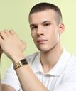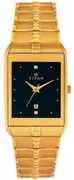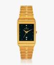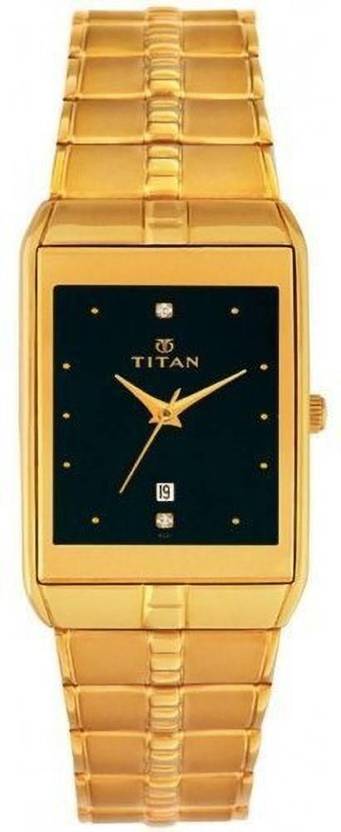 One of India's leading watch brands, Titan, presents this beautiful analog wristwatch that comes with a rectangular, black dial. The golden strap further adds to its charm.