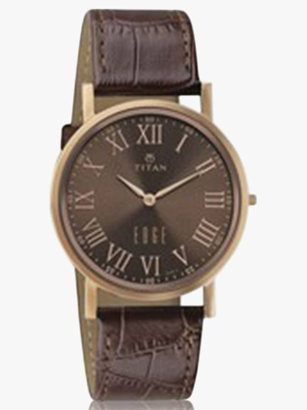 Titan Edge Quartz Brown Dial Brown Leather Strap