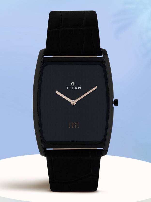 Titan NQ1596NL01 Titan Edge Quartz Black Dial Black Leather Strap Analog Watch - For Men