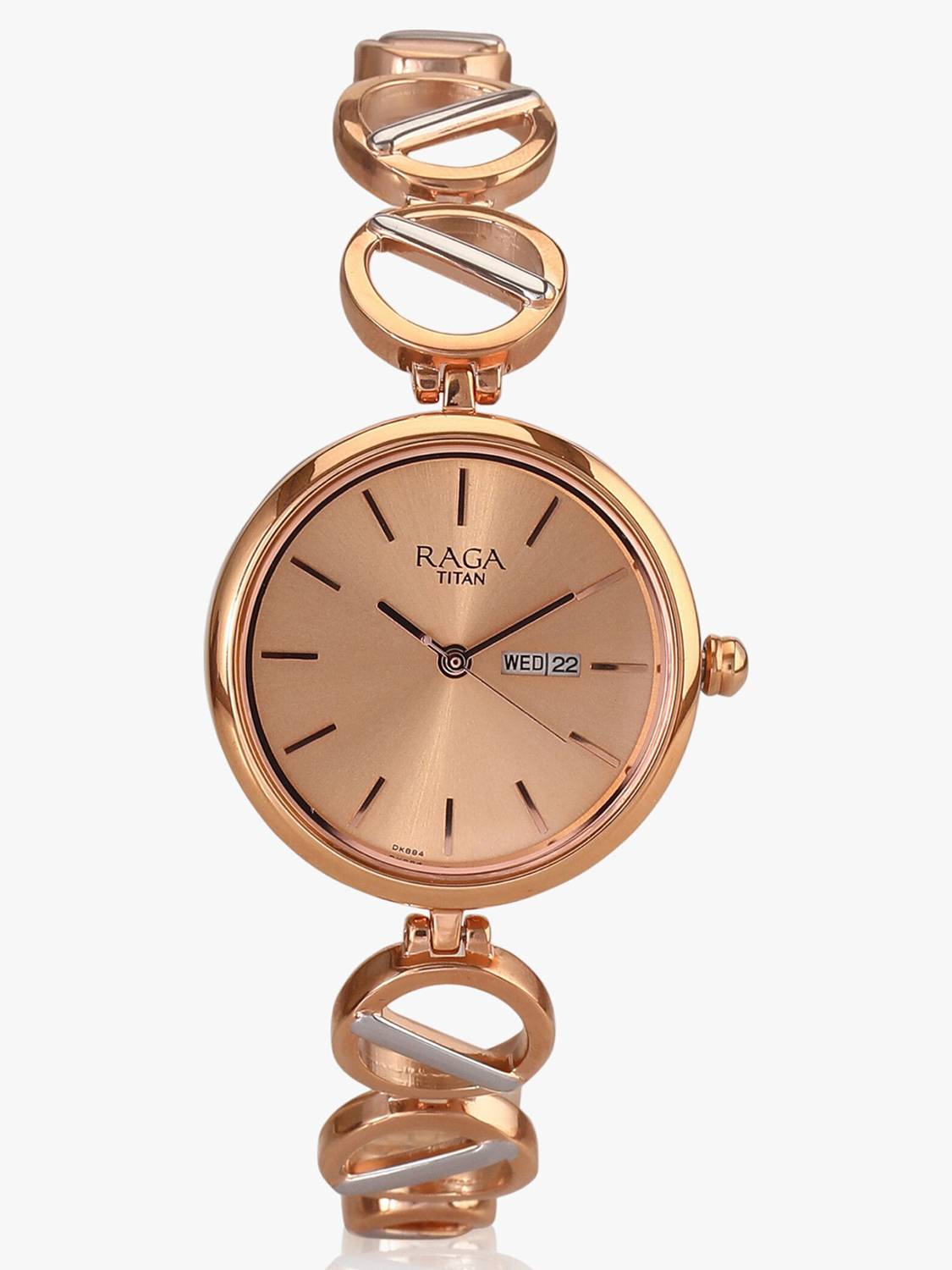 Titan NQ2644KM02 Titan Raga RoseGold Dial RoseGold & Silver MetalStrap Analog Watch - For Women