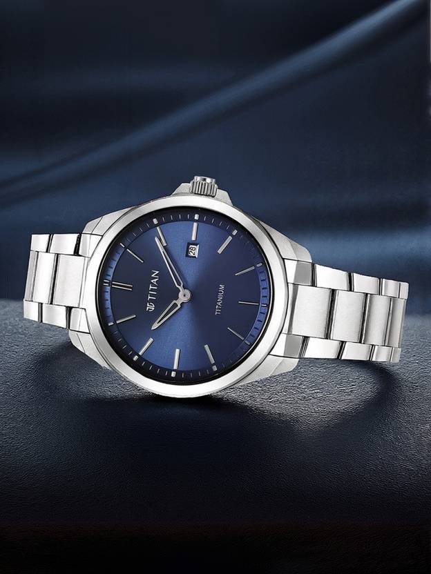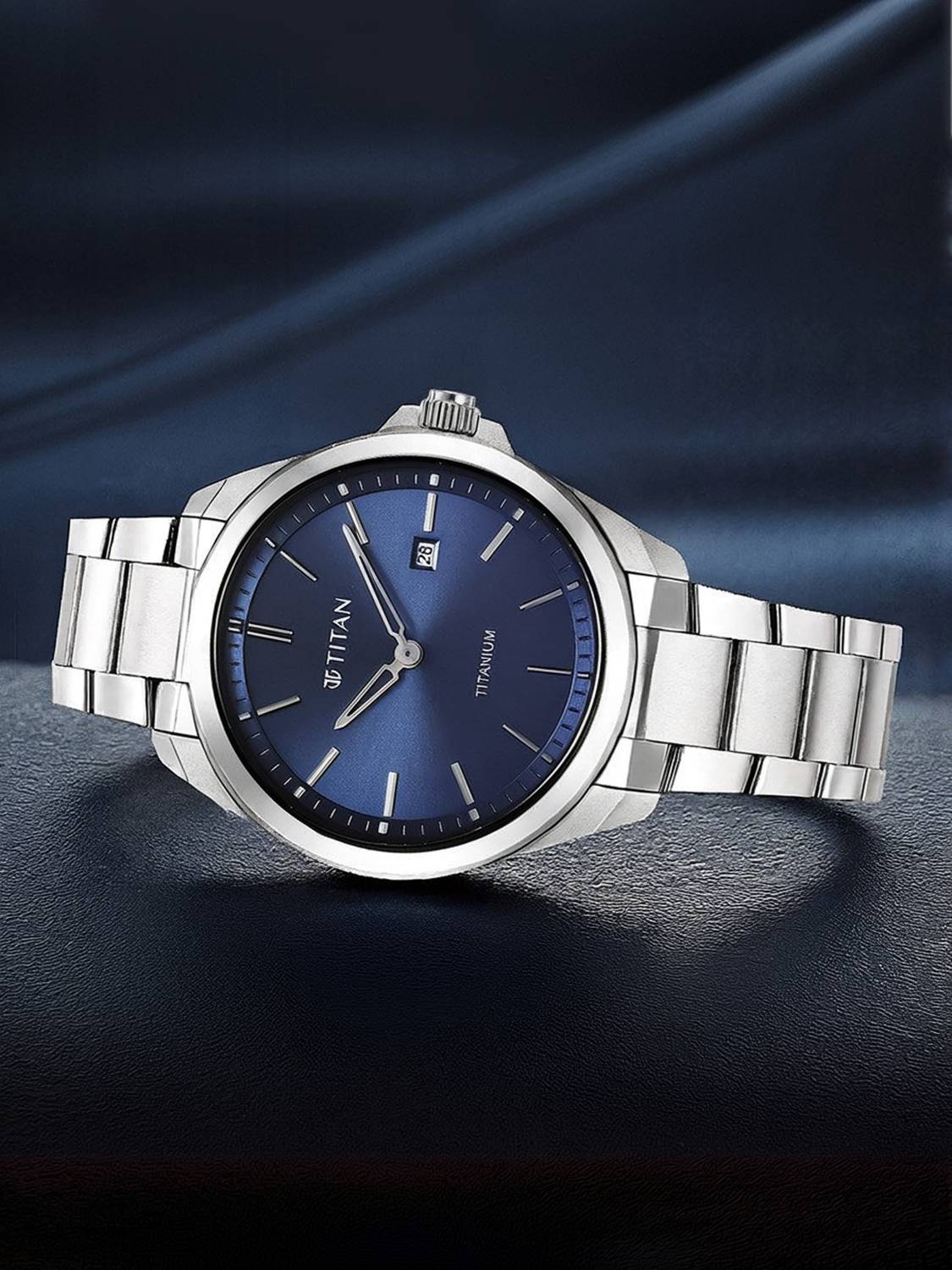 Titan Titan Titanium Titan Titanium With Date Blue Dial Silver Titanium Strap Analog Watch - For Men