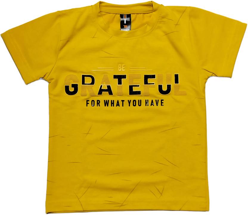 Boys Typography, Printed Cotton Blend Regular T Shirt (Yellow, Pack of 1)