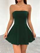Solid Tube Fit&Flare Sleeveless Mini Dress For Women