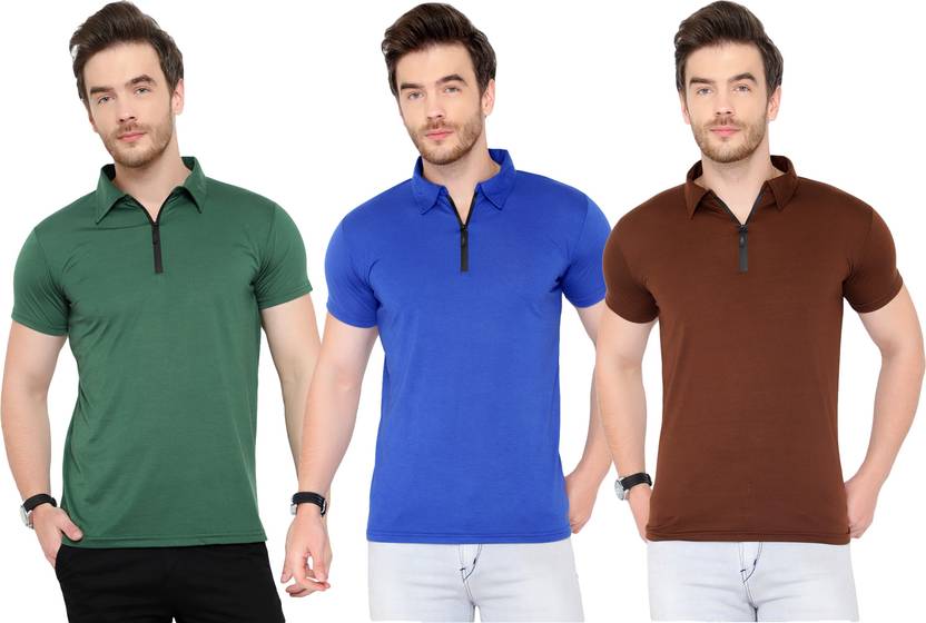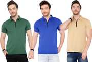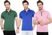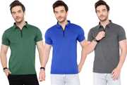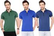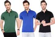 Pack of 3 Men Solid Polo Neck Cotton Blend Multicolor T-Shirt