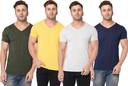 Pack of 4 V neck Combo T-shirts Multicolor Men Solid V Neck Cotton Blend Multicolor T-Shirt
