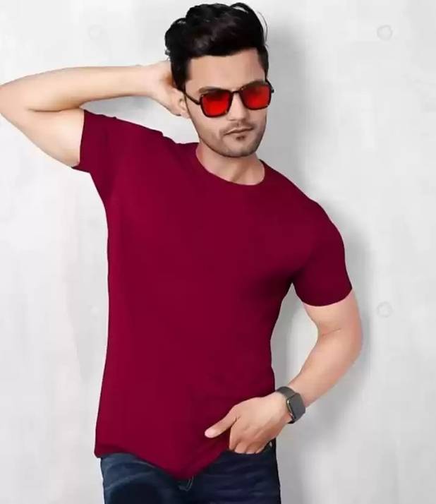 Men Solid Round Neck Polyester Maroon T-Shirt
