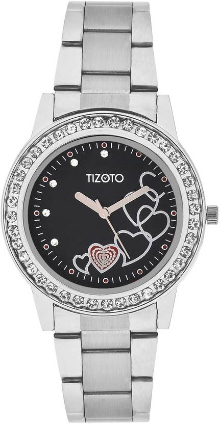Tizoto Black Dial Metal analog watch with silver metal strap gives a classy , royal look to women in an affordable prices.