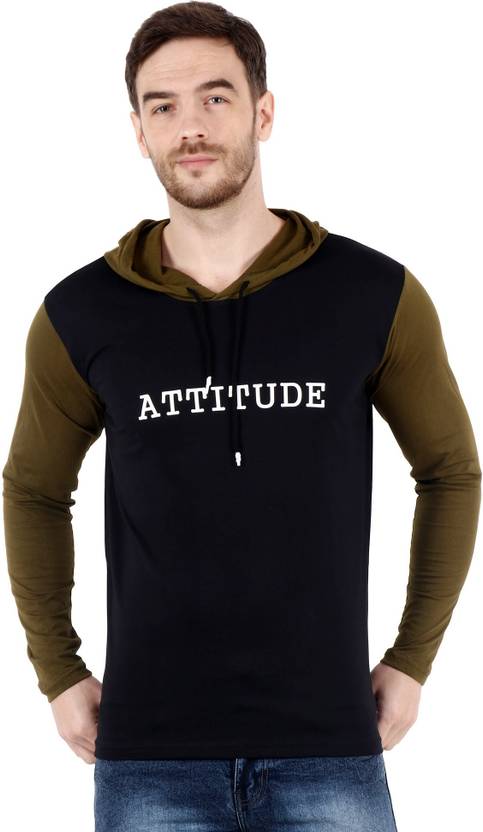 Men Printed Hooded Neck Cotton Blend Blue, Brown T-Shirt