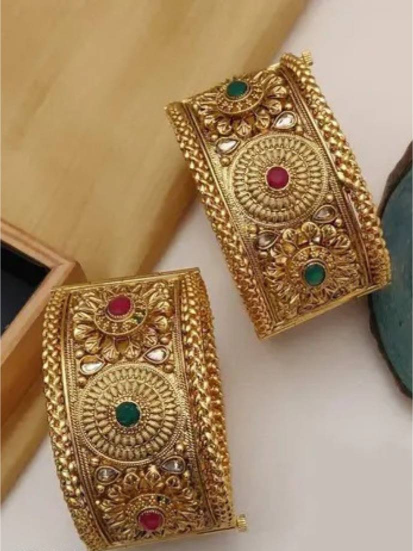 TKRB SALES Brass Agate Gold-plated Bangle Set (Pack of 2)