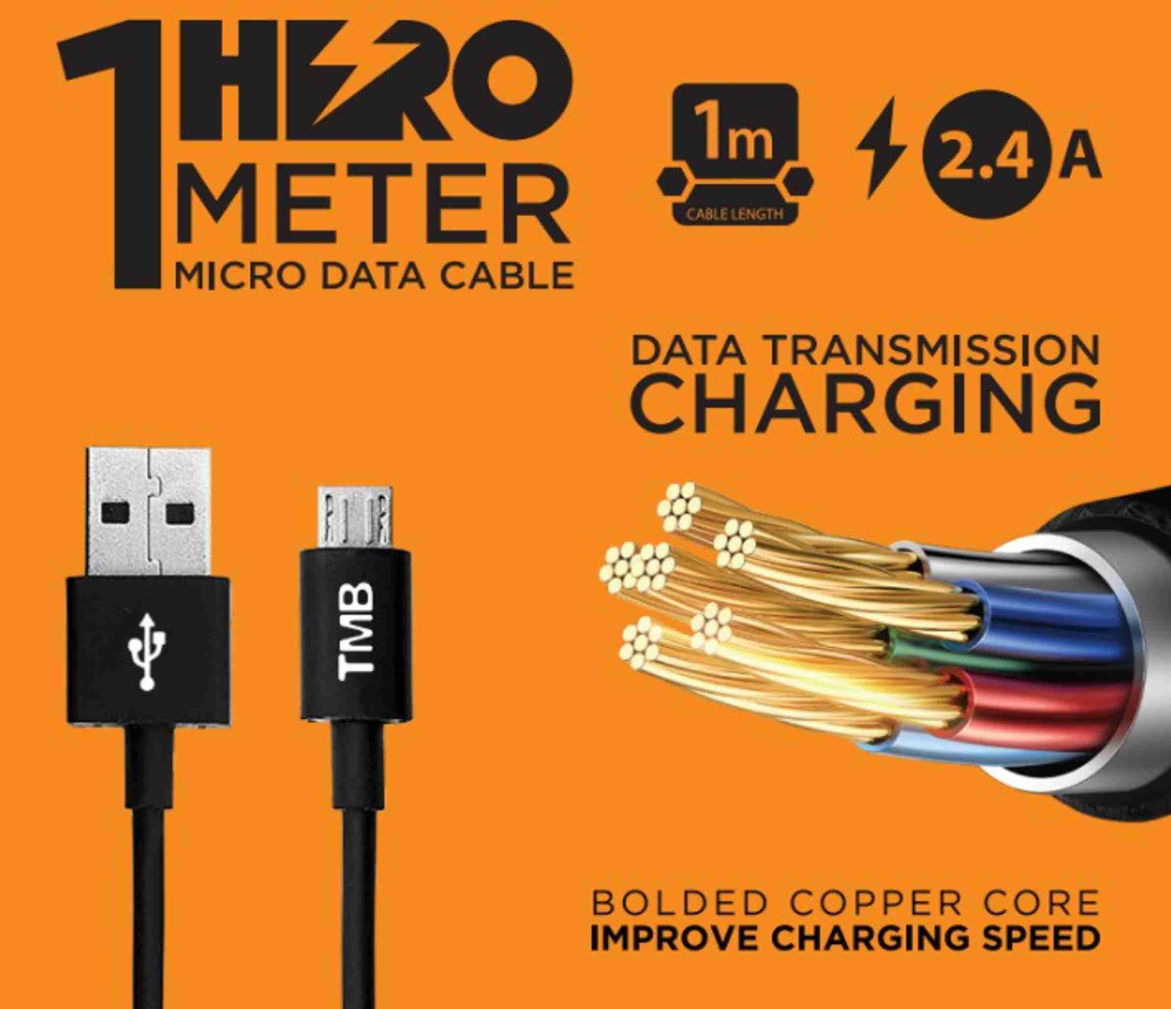TMB Micro USB Cable 1 m meter 2.4A MACRO CABLE (Compatible with Android and Other Micro USB Supported Devices, White, On...