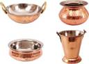 TMS 4 Steel Copper Serving Set-1 Bucket-300 ML, 1 Punjabi Handi-450 ML, 1 Kadai-350 ML, 1 Handi-300 ML-Serving Dal, Rice, Curry, Chicken, Mutton -Home, Hotel, Restaurant, Serveware Container Serving Set
