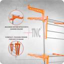Constructed from heavy-duty materials, this cloth dryer stand ensures exceptional durability and longevity. Moreover, the powder-coated finish enhances its aesthetic appeal and also offers robust protection against the elements. UV-resistant and rustproof, this dryer stand is built to withstand harsh conditions, ensuring that it remains a reliable companion for your laundry needs over the years.