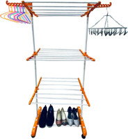 Featuring a three-tier design, this cloth dryer stand provides ample space to accommodate various types of laundry. Whether drying adult clothes, baby clothes, socks, or even bed sheets, this stand can handle it all with ease. Capable of supporting up to 45 kg, it ensures that even heavy loads are managed efficiently. Additionally, the inclusion of a footwear rack adds to its versatility, allowing you to dry your shoes and other accessories conveniently.