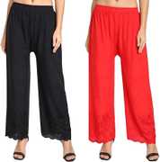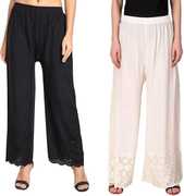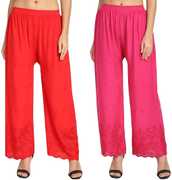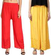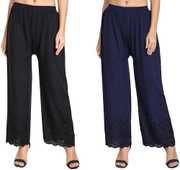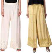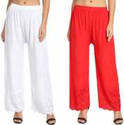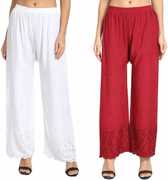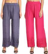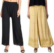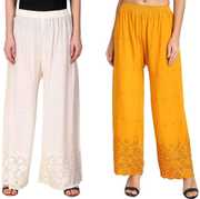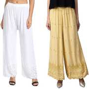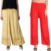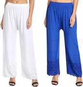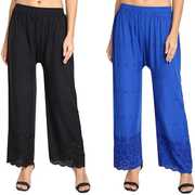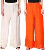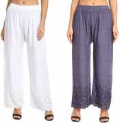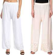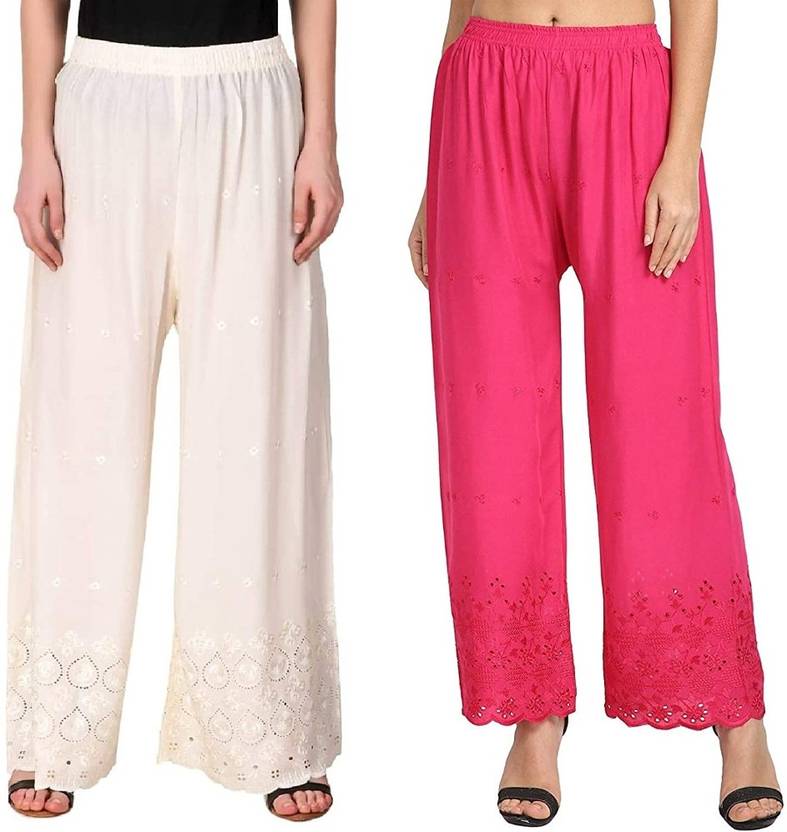 Women Lucknow Chikan Art Work Embroidered Rayon Palazzo. Palazzo length 39 inches with mid waist looks great and classy with both flats and heels. Keep cool in casual style with this rayon chikan palazzos. Specially designed for your comfort. Actual product may vary a bit in colour and pattern due to photoshoot, lighting affect and your screen resolution. Casual rayon chickan palazzo with broad elasticated waistband.