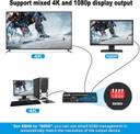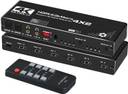 TOBO This 4K HDMI matrix can connect up to 4 HD signal sources to 2 HDMI Display terminals via optical fiber or stereo headphone output, it allows easy switching or splitting of four HDMI devices into two HD displays.The power supply port is designed to be on the same side as all HDMI ports for easy connection. Solutions suitable for home theater, office, school, meeting room, shopping center, hotel or museum Support multiple video resolutions, including 4K@60Hz, which can make the picture more coherent, smooth and natural, reducing the problem of picture delay (Doesn't support ultra-wide 4K).It is not recommended to use 3440x1440 resolution, which may cause compatibility issues.Support HDMI2.0b, HDCP2.2, HDR 10, RGB:8:8:8, 3D, etc. Support DVI display, 18.5 Gbps data rate transmission,LPCM/DTS 5.1 channel/Dobly Atmos 7.1 (Note: Dobly Atmos 7.1 only supported by OUT A)