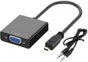 Tobo HDMI Adapter 2 A 0.18 m Micro HDMI to VGA Adapter with 3.5mm Audio Jack, Male to Female Converter, 1080p Adapter for HDTV, XBOX, PS4, Tablet, PC, Projector. (Compatible with HDTV,LED,LCD, PC,Computer,Projector, Gaming Console, Black, One Cable)
