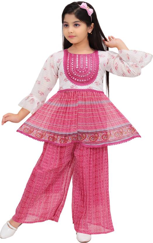 Girls Casual Kurta and Palazzo Set (Pink Pack of 1)