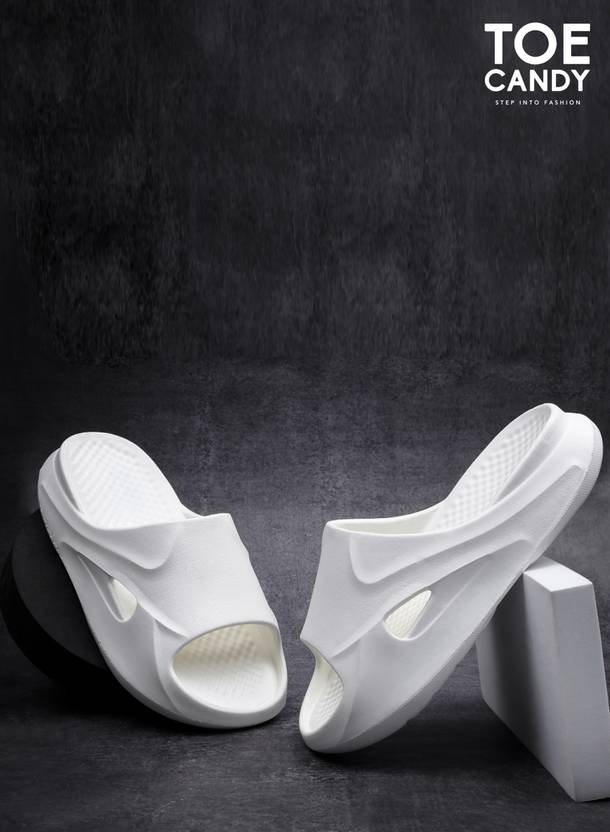 TOE CANDY Men Slip-on Slides (White , 6)