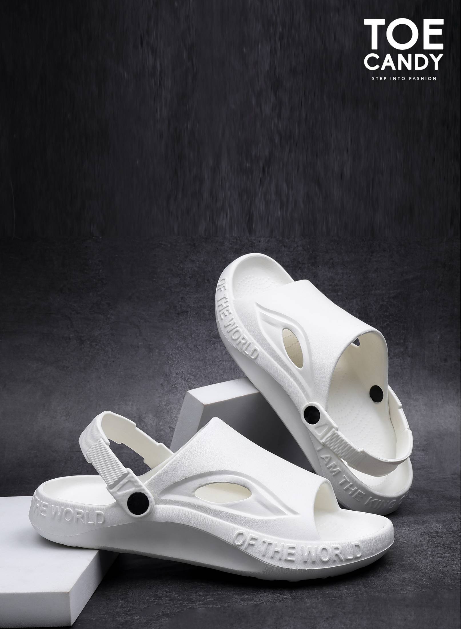TOE CANDY White Men Clogs Slide Men Sandals (White , 6)