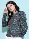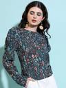 Tokyo Talkies Casual Graphic Print Women Blue Top