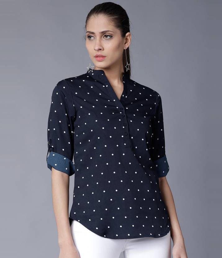 Tokyo Talkies Casual Roll-up Sleeve Printed Women Multicolor Top