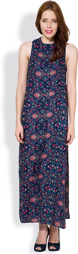 Tokyo Talkies Casual Sleeveless Printed Women Dark Blue Top