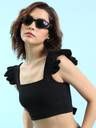Tokyo Talkies Casual Solid Women Black Top