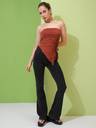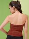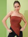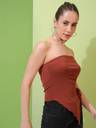 Tokyo Talkies Women Brown Solid Strapless Top With Assymteric Hem Ruched Top