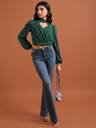 Tokyo Talkies Casual Solid Women Dark Green Top