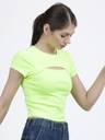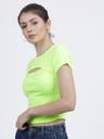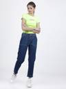 Tokyo Talkies Womens Green Round Neck Short Sleeve Crop Top