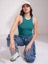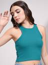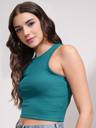 Tokyo Talkies Women Teal Solid Round Neck Sleeveless Rib Top