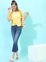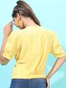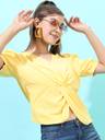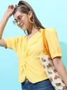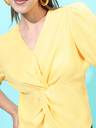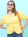 It's a very bright colour fabric is like cotton or poly cotton it's a bit see through suggested that not to be worn but dusky skin coz it makes your appearance darkar and dull...... otherwise it's a good top but ok ok kindoff I wore it like 6 7 times a years or maybe less