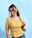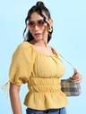 Tokyo Talkies Casual Solid Women Yellow Top