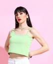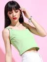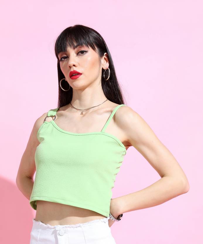 Tokyo Talkies Party Sleeveless Solid Women Green Top