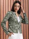 Tokyo Talkies Printed Single Breasted Casual Women Blazer (Green)