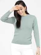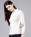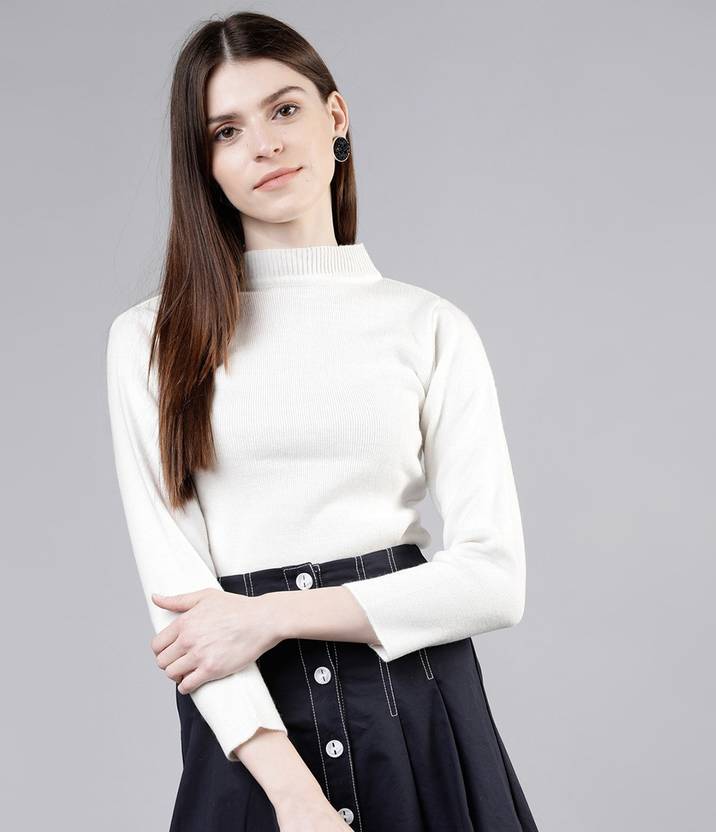 Tokyo Talkies Solid Crew Neck Casual Women White Sweater