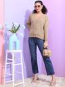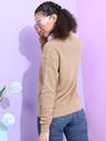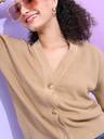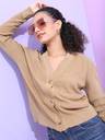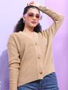 Tokyo Talkies Solid V Neck Casual Women Beige Sweater