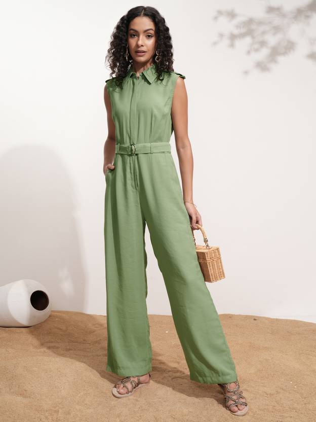 Tokyo Talkies Women Mint Solid Sleeveless Regualr Fit Jumpsuit