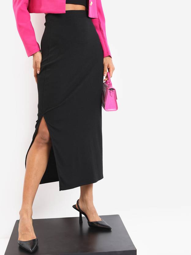 Tokyo Talkies Solid Women Pencil Black Skirt