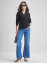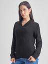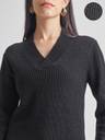 Tokyo Talkies Striped V Neck Casual Women Black Sweater