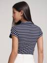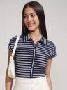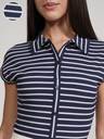 Tokyo Talkies Women Navy Blue White Stripe Collared Bodysuit