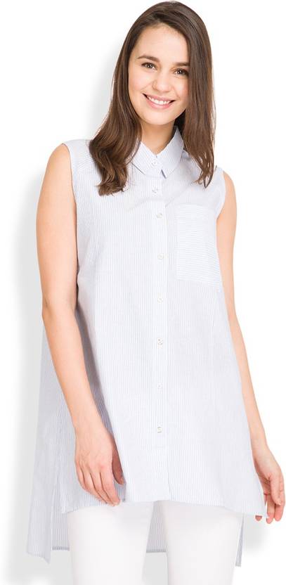 Tokyo Talkies Casual Sleeveless Striped Women White, Blue Top