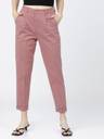 Best pants. It gives you a really classy look. Looks great with crop tops and tucked in shirts. Can be worn as formal pants as well. Fabric - Cotton, it's quite thick. Not transparent at all. (5/5) Colour - Same as shown in the product catalogue (5/5) Fit - True to size. High waisted (5/5) Comfort - It's not skinny at all and can be worn comfortably all day long. (4.5/5)