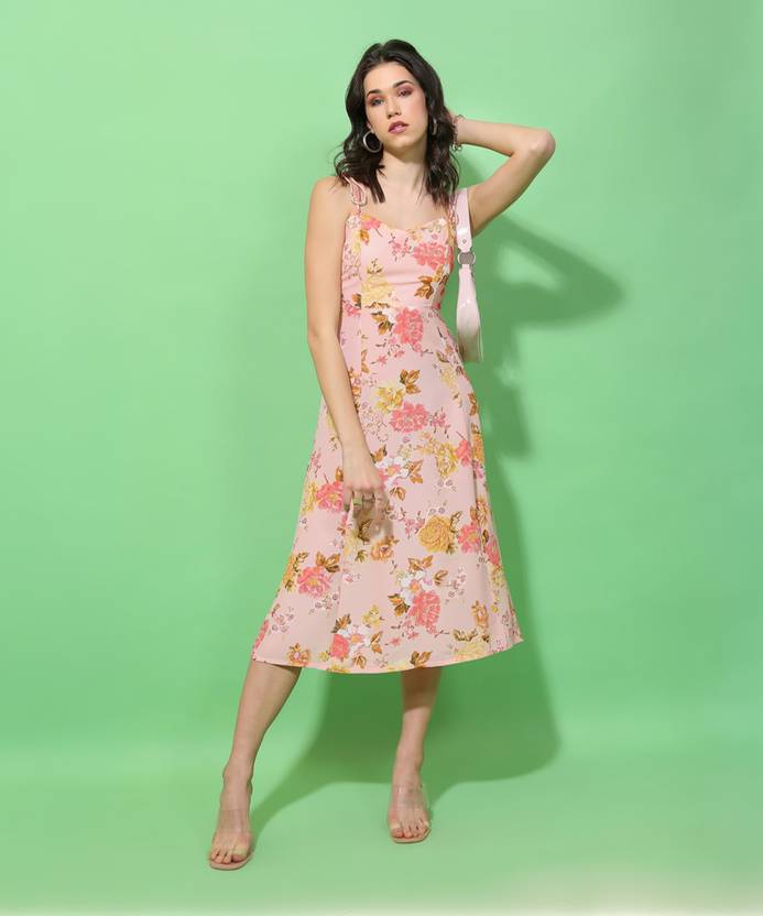 Tokyo Talkies Women A-line Pink Midi/Calf Length Dress