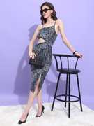 Tokyo Talkies Women Bandage Black, Blue, White Below Knee Dress