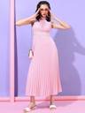 Tokyo Talkies Women Pleated Pink Midi/Calf Length Dress
