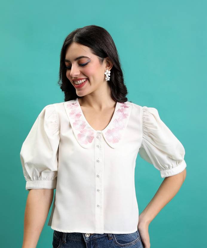 Tokyo Talkies Women Printed Casual White Shirt