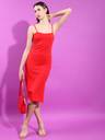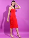 Tokyo Talkies Women Ribbed Red Knee Length Dress